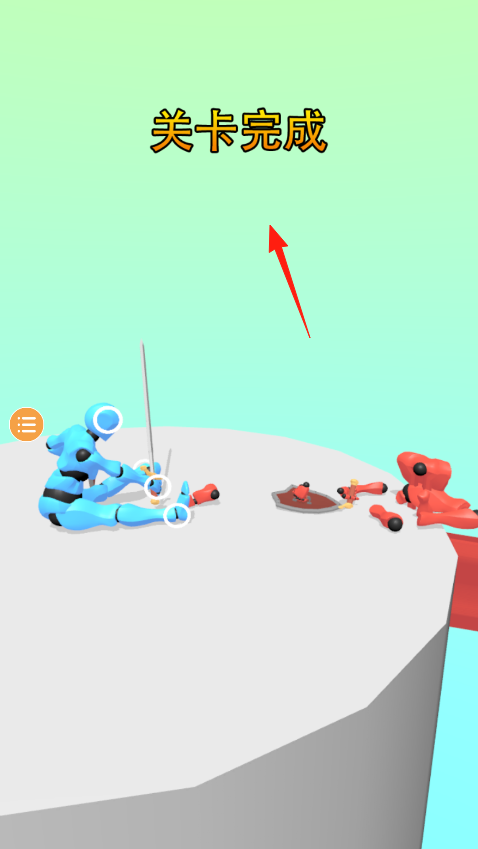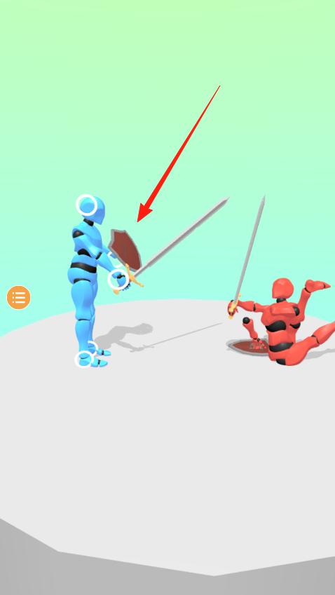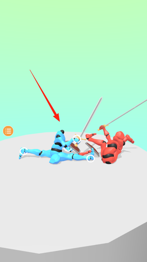 当两个机器人同时倒地时,需迅速点击屏幕促使蓝色机器人优先起身;当双方长剑交叉时会触发QTE机制,依据提示滑动屏幕即可释放强力劈砍,将红色机器人完全击倒在地。