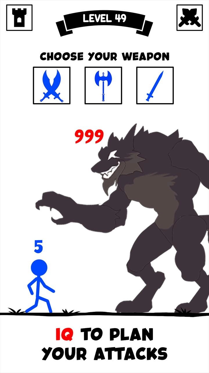 3.游戏运用清新的卡通艺术风格,结合鲜活的音效与精致的建模,打造出出色的沉浸式体验。测评提到:随着关卡的深入,各类火柴人角色会逐步解锁,你需要组建一支强大的队伍来应对外部威胁。与此同时,收集武器以增强英雄的战斗力,战胜所有对手,开启无尽的冒险之旅,解救被困的公主。