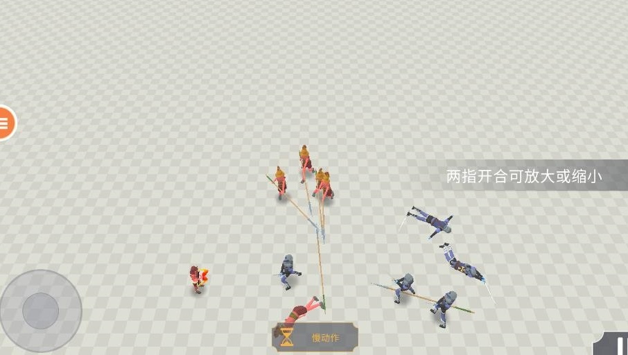 4、在战斗进行时,玩家能够借助两指开合的操作来放大或缩小屏幕,也可以点击慢动作功能,从而完整观看战争的整个过程。