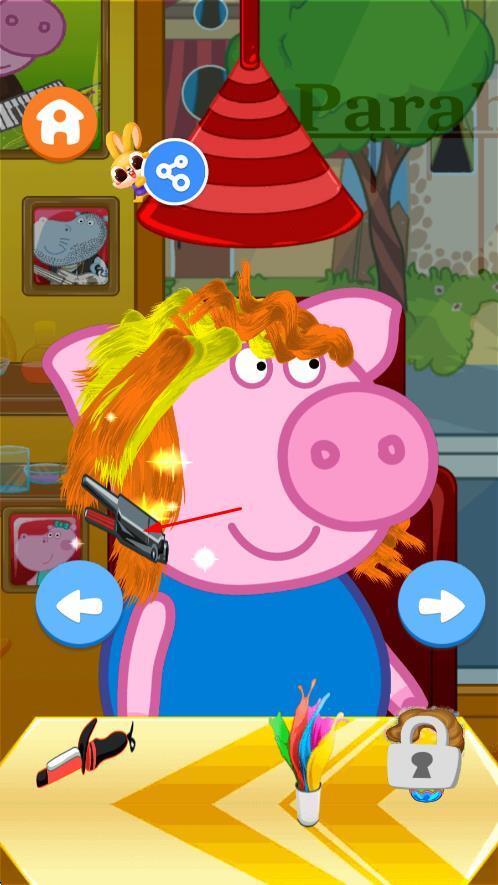 1、卡通角色阵容:包含小猪佩奇、乔治、猪妈妈等经典形象,每个角色都有独特的发型设定,结合角色间的互动对话与表情动作,能增强亲子玩家之间的情感共鸣和亲近感。