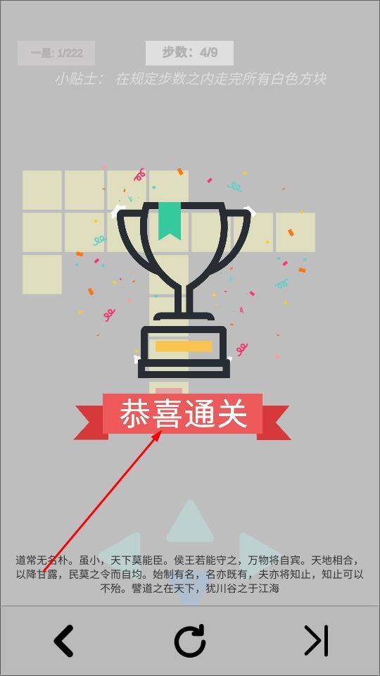 3、顺利踏过所有白色方块,满足步数条件后,就能触发通关祝贺,解锁全新关卡,让营救冒险继续推进。