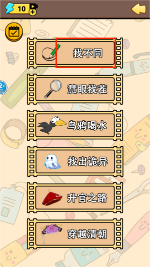 2、在游戏列表里选择“找不同”玩法,开启视觉挑战关卡。