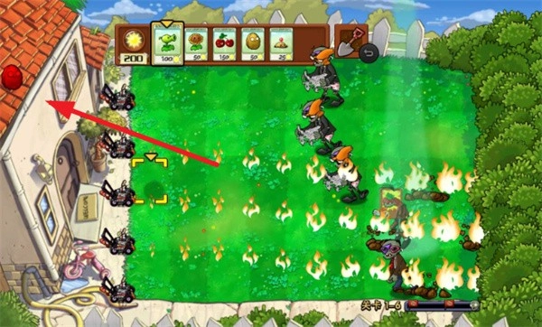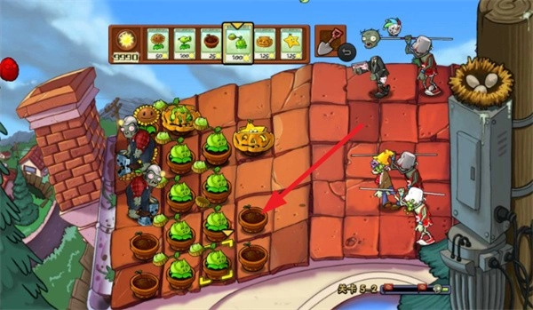 4、游戏里还设有屋顶关卡,在这个关卡中,植物需要种植在花盆里。