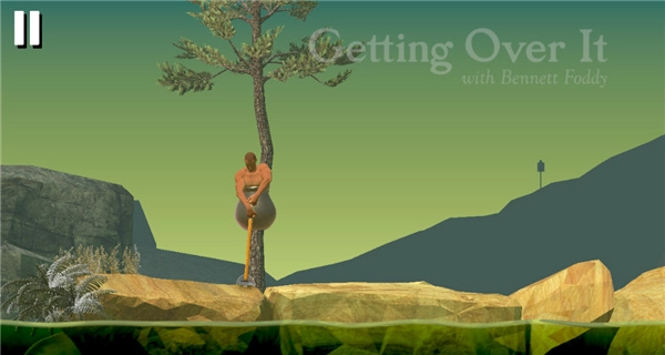 4、从锤子开始。要爬上去,你得先在地上挖个洞,反复折腾,调整角色的姿势才能站起来。