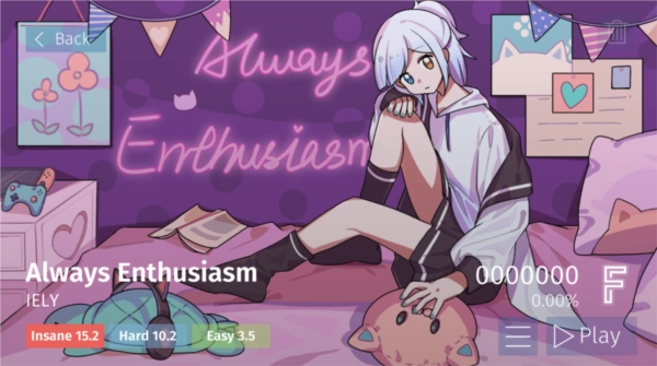 Phigrim是一款很特别的音乐游戏,自带准度显示和AP/FC达成情况的指示器,玩家在游戏过程中可以随时暂停查看自己的失误率。它的谱面制作精美,游戏主页也设计得十分简洁直观,玩家还能随时更换游戏角色。此外,玩家在游戏里可以自行上传自制谱面,这对许多玩家而言无疑是一大福利。