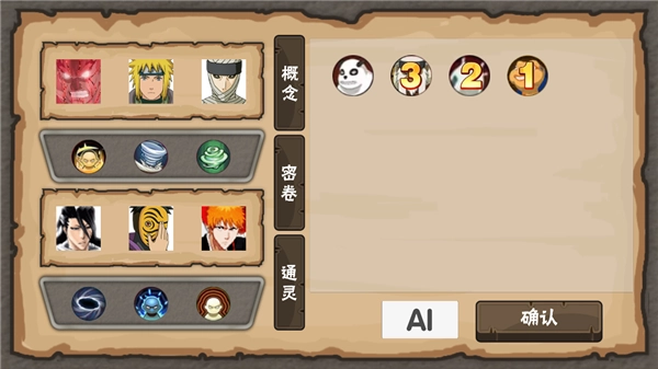 2、稍作等待后,会进入选角界面,玩家需要选择三个角色组成己方队伍,再挑选三个对手角色,同时还得选取三个不同的密卷和通灵。这一步需要谨慎抉择,密卷与角色的搭配极具策略性,把握使用替身的时机也至关重要。