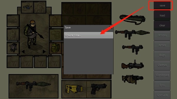 1、DIY角色创建完成后,滑动至最上方的“save”选项,点击其中的“create new”即可快速保存当前的设置