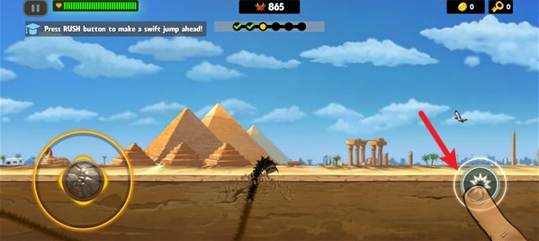 2、进入挑战后,通过左侧的方向键来控制蠕虫移动。