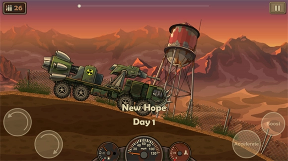 5、进入如图所示的界面后,Accelerate键是前进的控制键,Boost键能够触发喷射器实现加速,玩家需要操控战车去撞击道路上的僵尸。