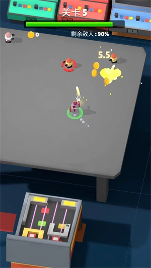3、击败敌人可获取金币及各类道具效果,机器人靠近时会自动将其吸取。