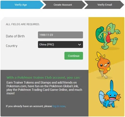 3、在跳转后的页面中填写生日与地区信息,随后点击绿色的“continue”按钮。