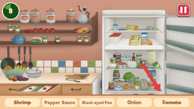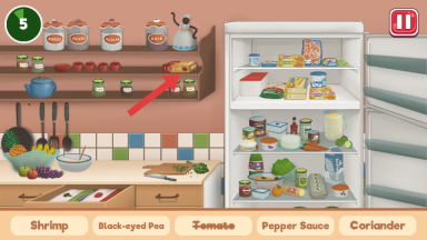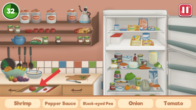 进入厨房场景后,要优先对冰箱和橱柜这两个核心区域进行检查,在冰箱里面能够获取到虾、黑眼豆这类需要冷藏保存的食材。
