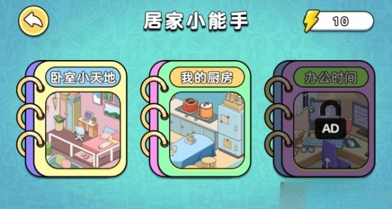 3.我选择的角色是居家小能手,接下来还有不同模式可供挑选,包括卧室小天地、我的厨房以及办公时间。