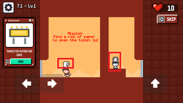 和时间较量,闯过每一道关卡。你能否在避免死亡的前提下抵达洗手间?唯有最聪慧、最敏捷的玩家才能存活下来!