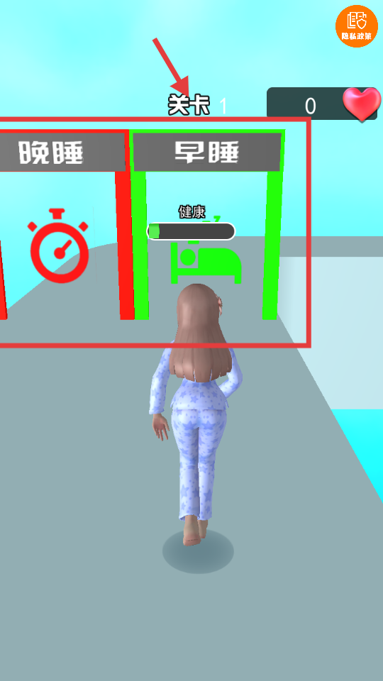 2、继续前进至关卡选择界面,依据健康目标选择【早睡】通道,以此提升角色的身体素质。
