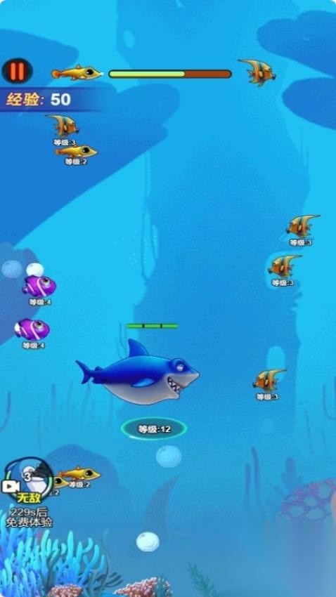 1、所有生物都能被轻松捕食,不过部分敌人会发起反击,这时候就得借助环境里的漩涡困住大鱼,用智取的方式来应对。