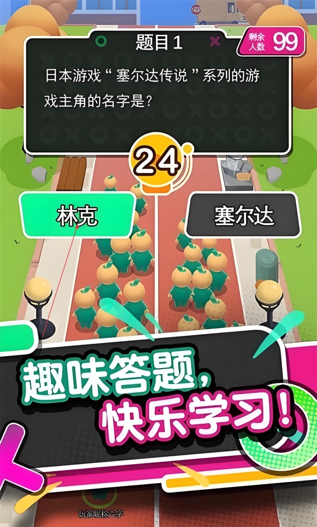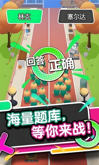 进入游戏后随着人群往前走,遇到题目时迅速做出选择,回答正确就能接着前进,要是答错了就会被淘汰。