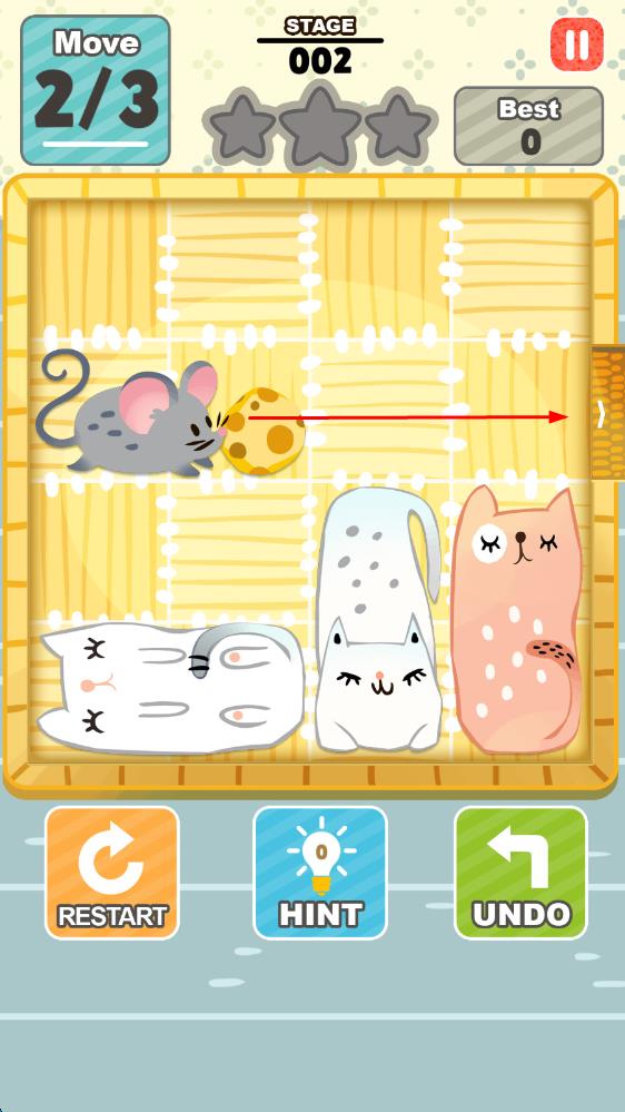 1、模式选择解谜:先从普通模式开始上手,等熟悉了躲避猫咪的规则后,再去挑战难度更高的地狱模式。在解谜过程中,你需要点击场景里的各种元素来规划路线,帮助小老鼠顺利从猫咪的包围中安全逃脱。