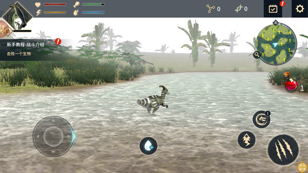 3、通过完成新手教程之类的任务,击败指定的生物,来获取资源与经验,进而解锁新的玩法和恐龙种类。