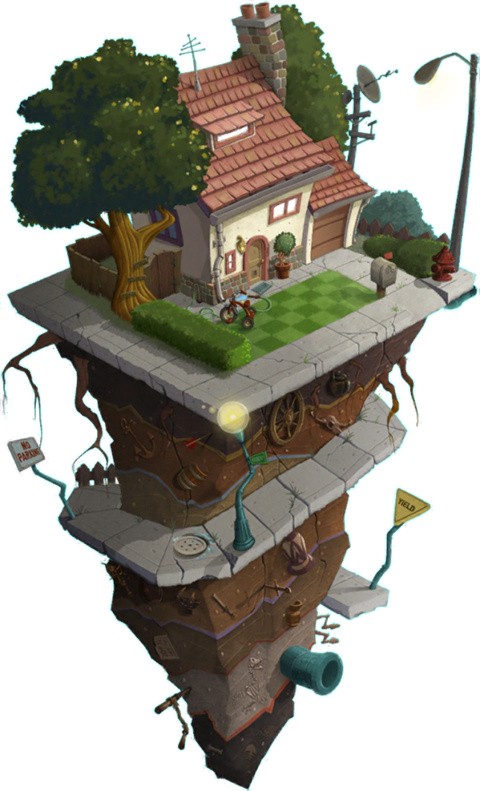 这个世界的灵感来源于电影《爱丽丝梦游仙境》。其背景包含以下几处:第一处是戴夫的家,第二处为僵尸营地,第三处是蘑菇与水壶,第四处是神秘远方,第五处则是花圃与南瓜。