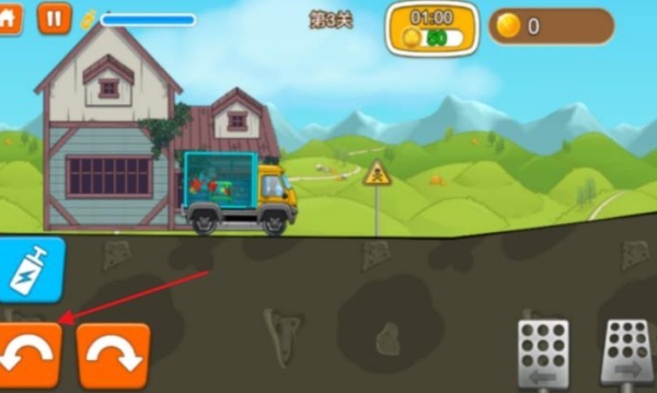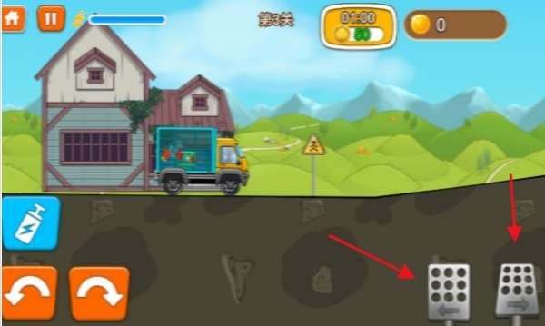 进入关卡后,点击右侧按钮,即可控制车辆前进或刹车。