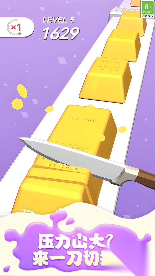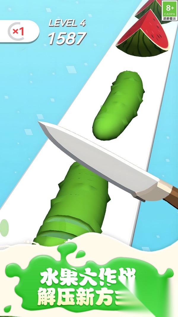 1. 游戏里的飞刀设计颇具特色,玩家能借助调整飞刀的力度与方向,达成各式各样的切割效果。