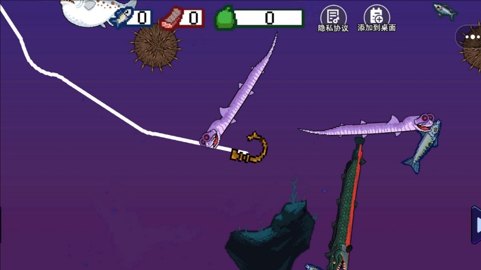 1、在钓鱼环节中,玩家可以通过点击或滑动屏幕的操作来钓取各式各样的鱼类,从而获得用于刮鳞的原料。