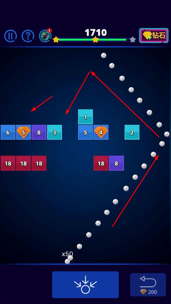 3、善用道具扫除障碍:碰到难以击破的砖块或是复杂的布局时,恰当运用游戏里的物品,凭借道具的特殊作用来扫除障碍,例如用爆破道具一次就打碎大片砖块。