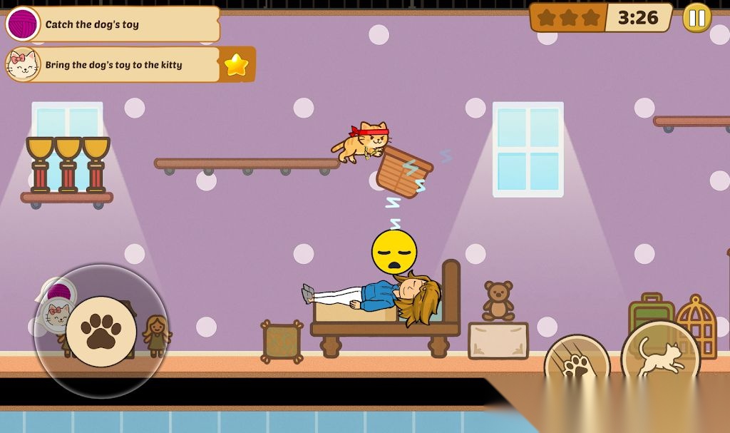 猫咪混乱是一款益智休闲游戏。围绕着可爱的猫咪设计了四种趣味模式,在混乱模式中,玩家可以扮演猫咪在房屋中尽情破坏制造混乱。在关爱模式中,玩家可以和猫咪互动玩耍,可以给猫咪洗澡投喂食物。在解谜救援模式中,玩家需要开动脑筋解谜拯救被困的猫咪。在迷你家园模式中,玩家则可以获取各种家具,装扮猫咪的房间。