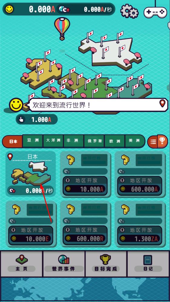 1、踏入流行世界的大门,从最初的起始区域出发,你可以通过点击屏幕来收集笑脸。当笑脸积攒到特定数量时,就能解锁首个独具特色的地区,正式开启环球探索之旅的第一步。