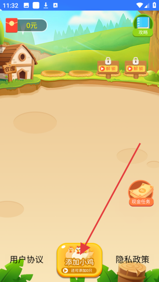 2、在主界面,点击添加小鸡的按钮,消耗相应资源,即可增加养鸡场里小鸡的数量。