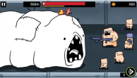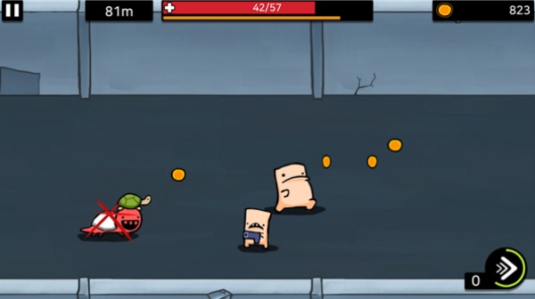 2、在实验室场景里操控小怪物进行跑酷,通过点击屏幕来控制角色上下移动,避开陷阱和敌人,与此同时吞噬小型生物以维持饥饿值,保证能够持续逃亡。