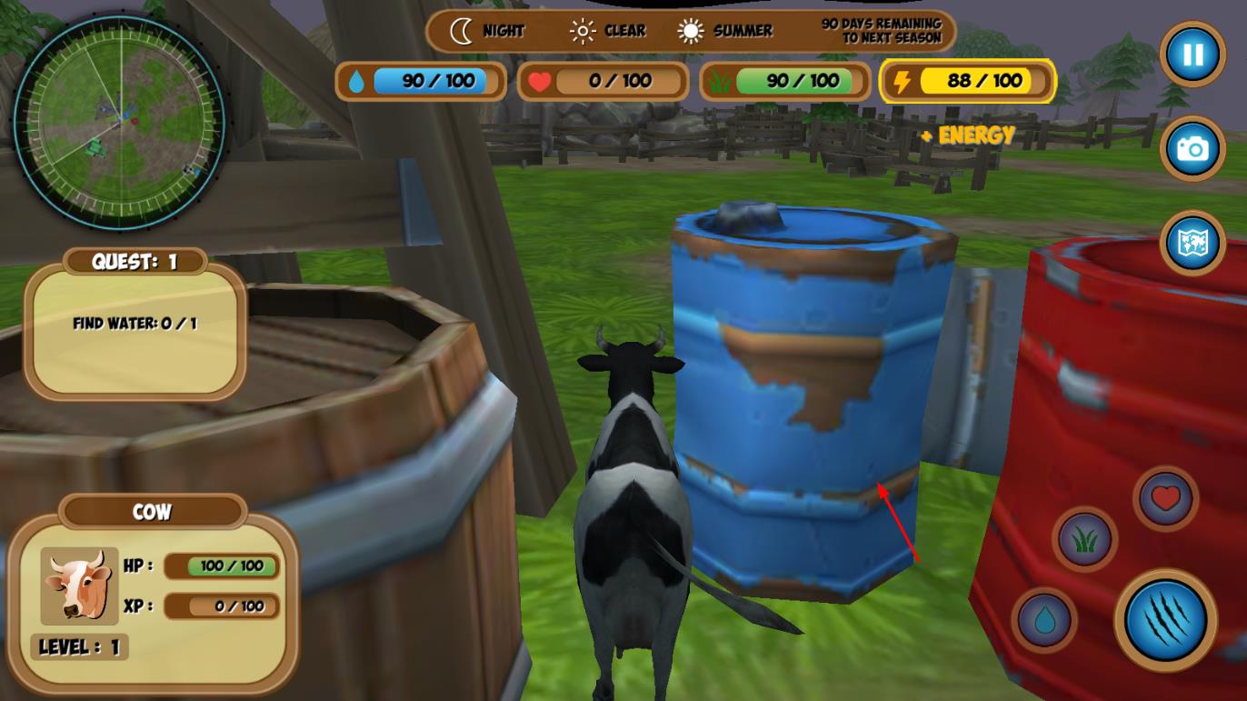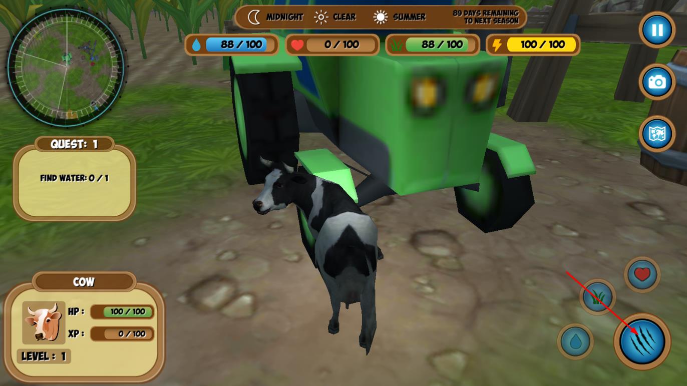 3、体力管理机制:仿照现实里奶牛的生理状况,体力会随着活动量的增加而消耗,需要借助进食来进行恢复,以此提升游戏的策略性以及玩家的代入感,让游戏体验更趋近于真实情景。