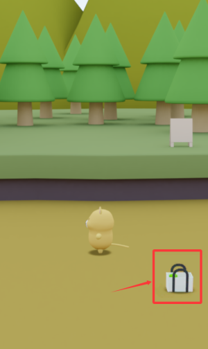 2、点击红框灰色小包,触发隐藏互动道具。