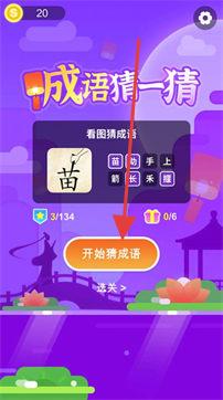 1、进入游戏首页后,点击“开始猜成语”按钮,即可进入关卡选择界面,或者直接开启第一关的挑战。