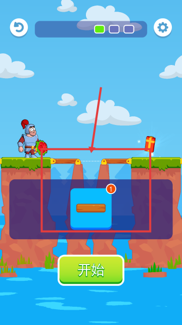 1、点击【木板】来填补沟壑,搭建出可供通行的路径,帮助骑士拿到对岸的【礼物】。