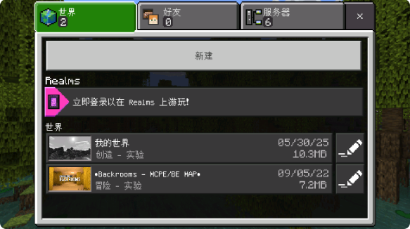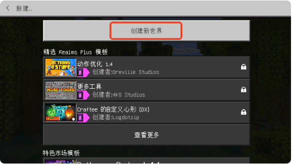 5、接下来继续点击“新建”与“创建新世界”,并在设置里开启“实验性游戏”功能