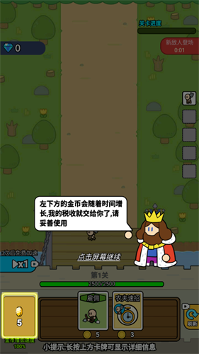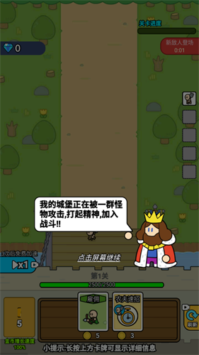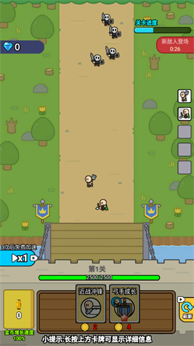 3、游戏界面的右上方会呈现当前关卡的推进情况,同时还会显示下一波敌人即将出现的时间,以便玩家能够充分做好应对准备。