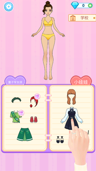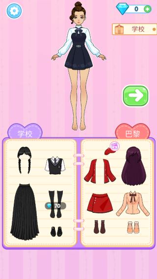3.要留意右上角的提示,这次的提示是“学校”,所以得把娃娃装扮成学生的样子才行。
