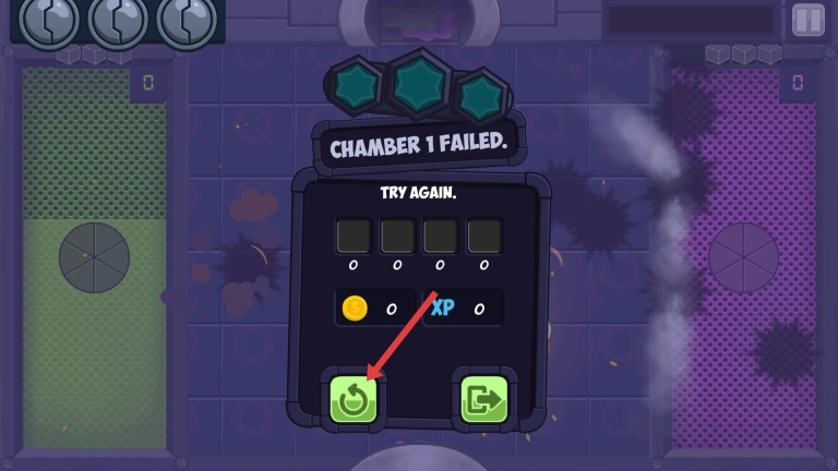 3、要是关卡没能通过,就点击重试按钮,把失误之处总结一下,对病毒的引导路径进行调整,让操作更优化,再一次发起挑战,争取顺利通关。