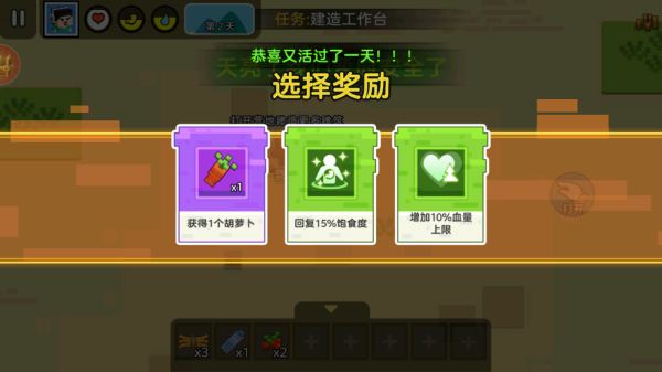 1、迷你像素的画风与轻松的音效相互配合,构建出一种紧张中带着可爱的独特生存氛围。