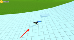 2、在平坦的方块路面上进行特技翻滚,完成前空翻等特技动作,同时保持行进速度,顺利通过绿色草地区域。