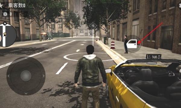 2、点击车门进入车内,借助虚拟方向盘、油门与刹车,精准操控出租车完成乘客的接送任务。