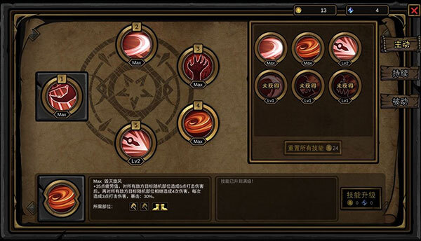 核心技能就是图里展示的这个,具备多段群体伤害效果,而且完全不会出现未命中的情况。要是一套技能没能解决问题,那就多释放几套。不过这个技能只适合在游戏前期用来推进关卡,到了后期面对BOSS时,还是得依靠血骑士才行。
