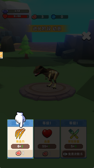 1、玩家将从初级恐龙起步提升等级,通过自由狩猎获取充足的食物,进而快速完成进化以解锁全新的能力与天赋。