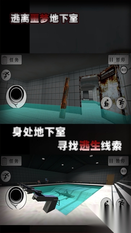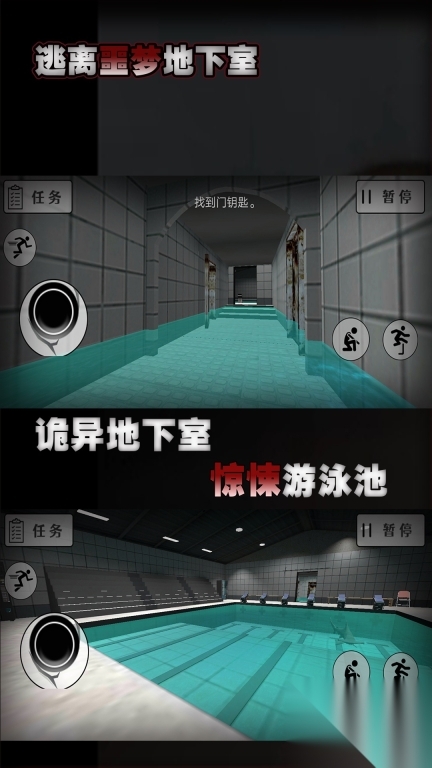 3、除游泳外,还包含找钥匙、开启特定门等任务,你需要根据提示探索建筑,解开各类谜题以推进逃生进程。