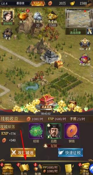 3、经典战役剧情副本:闯关式的剧情副本会高度还原官渡之战、赤壁之战、夷陵之战这类经典战役,在击败各个关卡的BOSS后,就能获得稀有武将碎片、顶级装备图纸以及城池建设资源。