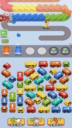 2、排序功能别随便用,等小车变得杂乱、难以凑成消除组合时,再用它把同色同方向的小车整理到一起,这样能节省操作步骤。