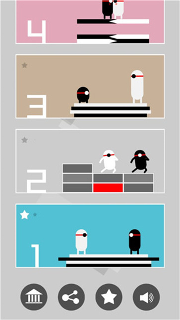 4、第二关需要避免被砖块砸中,点击屏幕就能操控角色移动,每次移动遵循“黑右移、黑白左移、白右移”的规律,这对玩家的手速是不小的考验。
