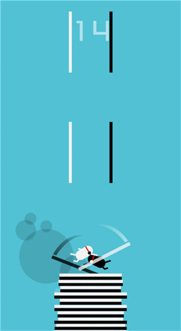 5、第三关,核心是避免两侧的杠子碰到角色,点击屏幕就能改变角色的高度。
